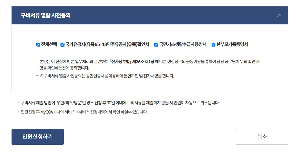 구미서류 열람 사전동의를 체크하고 민원신청하기 버튼을 누르면, 20일 이내에 주민등록증을 수령할 수 있습니다.